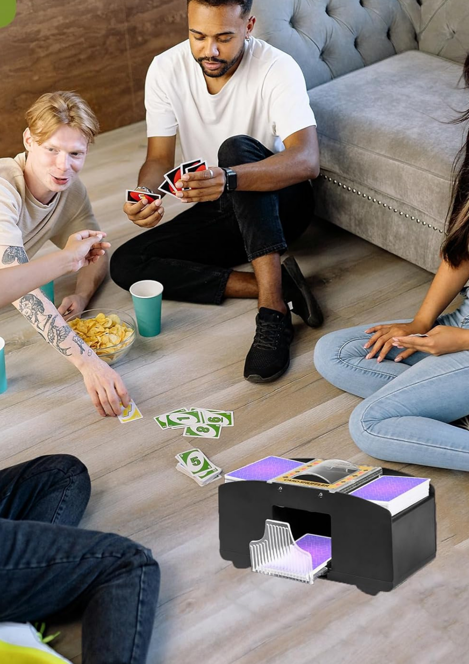 Experience smooth shuffling with The Shuffle Deck. Perfect for home Uno, Blackjack, Poker, Texas hold em and more card games!